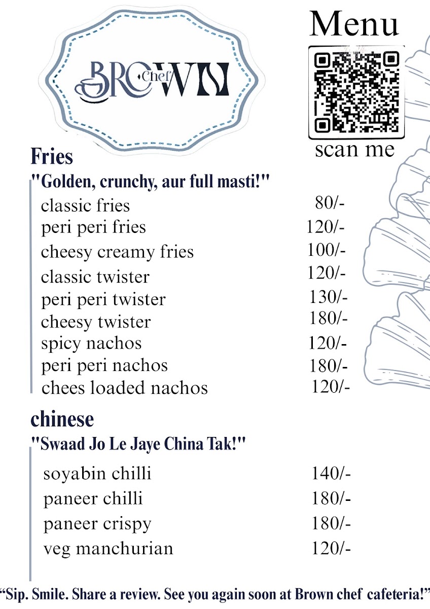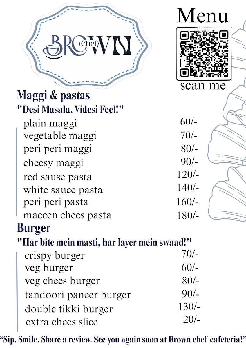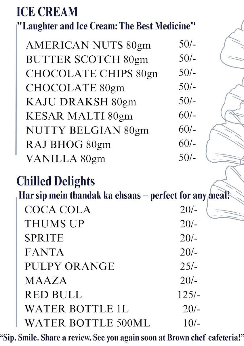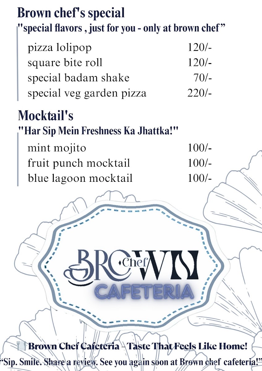 Located in the heart of Bhusawal, the Brown Chef Cafeteria serves up a delightful mix of flavors that make it a must-visit dining spot. Their pizza selection is a standout, featuring options like the Veg Pizza, Margherita Pizza, and Paneer Pizza, each crafted with fresh ingredients and a perfect crust. Prices are accessible, with pizzas starting at just ₹130.